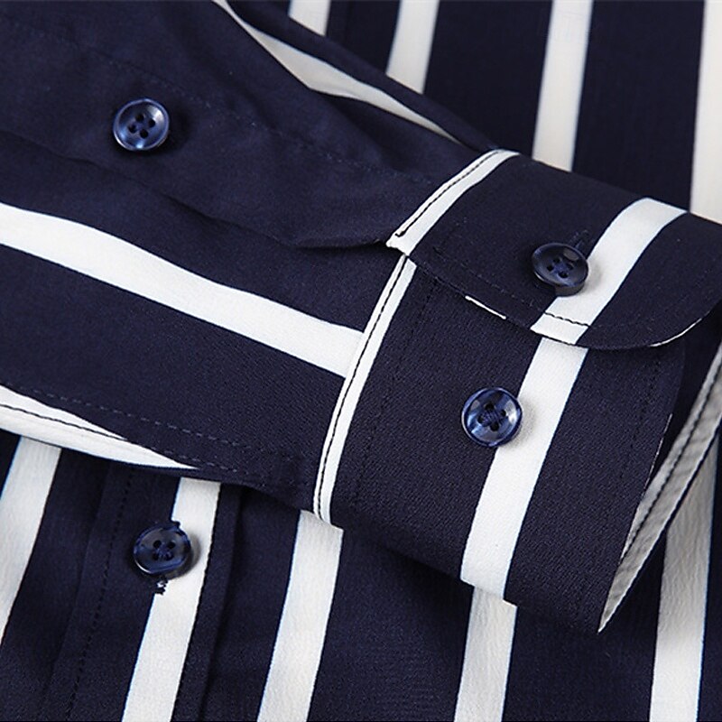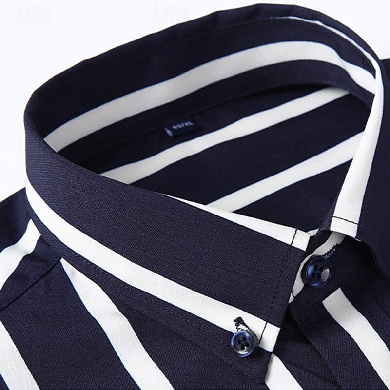 This Men's Shirt Dress Shirt Button Up Shirt Stripes Wedding Party Light Blue Navy blue+white Black White Long Sleeve Lapel Spring Fall Clothing Apparel Buttons combines elegant design with practical functionality. Every detail has been carefully considered to ensure you get the best possible experience. The magnificent construction means this product will serve you well for years to come.