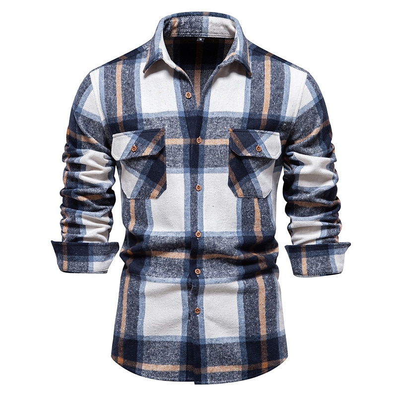 More information about Men's Shirt Flannel Shirt Plaid Shirt Shirt Jacket Overshirt Shacket Plaid / Check Outdoor Daily Wear Light Blue White Navy Blue Green Long Sleeve Lapel Fall & Winter Clothing Apparel Pocket