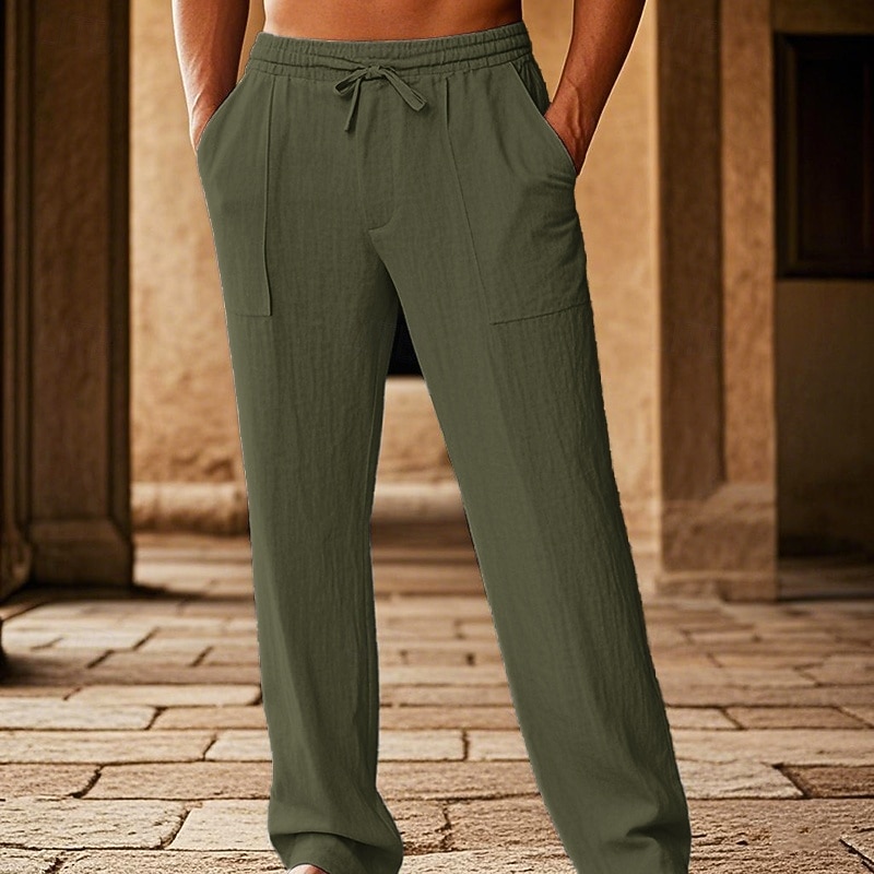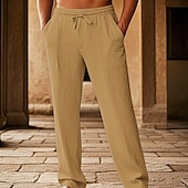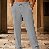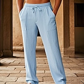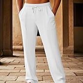 sizzling ! Men's Cotton Pants Pocket Drawstring Elastic Waist Plain Comfort Breathable Vacation Hawaiian Boho Black White