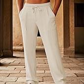 More information about Men's Cotton Pants Pocket Drawstring Elastic Waist Plain Comfort Breathable Vacation Hawaiian Boho Black White