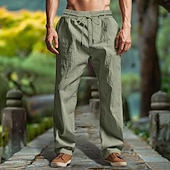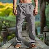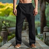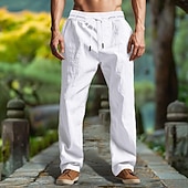 More information about Men's Linen Pants Trousers Summer Pants Beach Pants Drawstring Elastic Waist Straight Leg Plain Comfort Breathable Full Length Outdoor Casual Daily Fashion Retro Vintage Black White