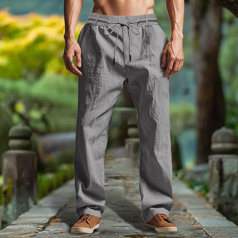 sizzling ! Men's Linen Pants Trousers Summer Pants Beach Pants Drawstring Elastic Waist Straight Leg Plain Comfort Breathable Full Length Outdoor Casual Daily Fashion Retro Vintage Black White