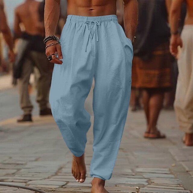 Why Choose Men's Linen Pants Trousers Summer Pants Baggy Pants Beach Pants Drawstring Elastic Waist Wide Leg Plain Comfort Breathable Full Length Outdoor Casual Holiday Fashion Retro Vintage Black White?