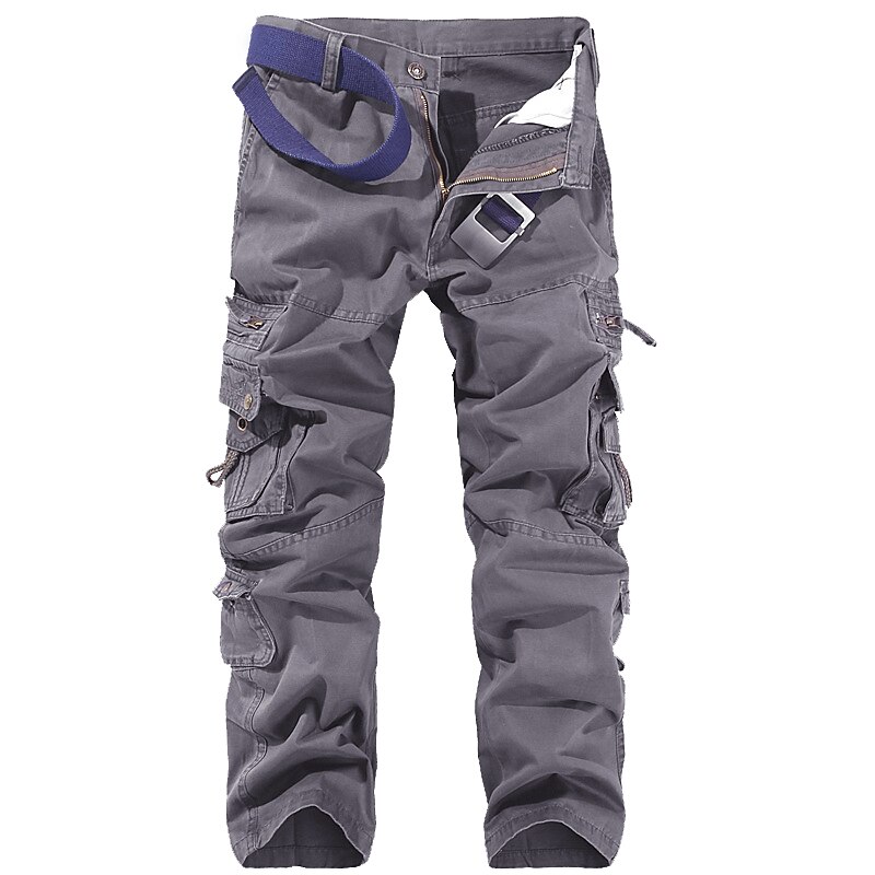 These tactical work pants boast a multi-pocket design, including secure side cargo pockets with buttoned or zipper closures ideal for storing essentials. The adjustable buckles on the waistband ensure a customizable fit, while the solid color pattern enhances their versatility. Available in earthy tones such as black, coffee, army green, khaki, and grey, these pants can be seamlessly paired with a variety of tops.
