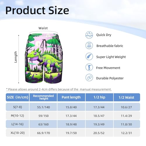 More information about Green Dinosaur Youth Beach Pants, smooth and Breathable, with Drawstring Waist, Suitable for Sports and Leisure.