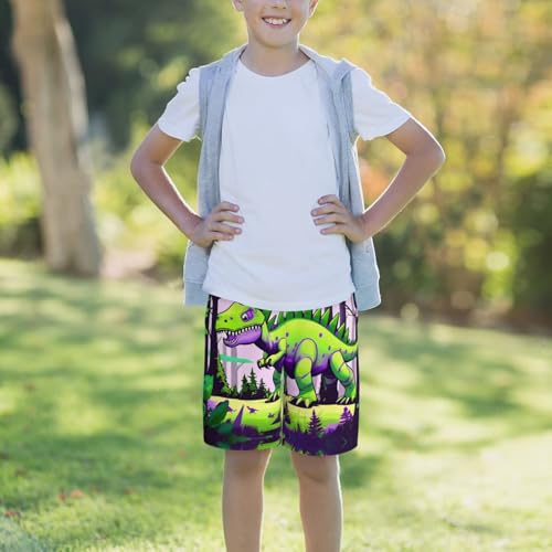 sizzling ! Green Dinosaur Youth Beach Pants, silky and Breathable, with Drawstring Waist, Suitable for Sports and Leisure.