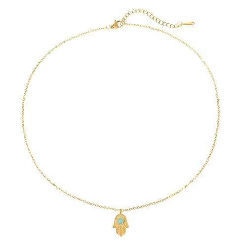 Made by Nami Hamsa Hand Evil Eye Necklace Gold Plated Hamsa Necklace for Women with Turquoise Stone 5