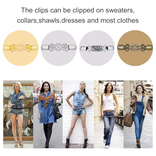 Ruisita 4 Pieces Vintage Dress Clips Retro Shirts Mitten Sweater Shawl Cardigan clothing Cinch Clips for Women & Girls 4