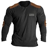 Highlights [Fabric] : Crafted from high-quality polyester, this men's long-sleeve shirt offers a micro-elastic fit that ensures both comfort and durability. The fabric is breathable, making it suitable for both active wear and casual outings. [Fit] : Featuring a regular fit, this shirt is designed to provide ample room for movement while still accentuating the physique. Its streamlined silhouette and round neckline deliver a contemporary look suitable for everyday wear. [Design Highlights] : This shirt boasts a unique patchwork design with an olive green base color, highlighted by black color block accents on the shoulders and sleeves. The front of the shirt is adorned with a monochrome embroidered American flag patch, adding a touch of bold style and individuality. [Occasions] : Ideal for street wear, vacation, going out, and casual daily activities, this versatile shirt can be paired easily with jeans or cargo pants to create a rugged yet sophisticated appearance. [Size Range] : Available in a wide range of sizes from S to XXXL, this shirt caters to adults seeking a sleek, comfortable addition to their wardrobe. Perfect for everyday use. premium materials and excellent craftsmanship ensure long-lasting durability.
