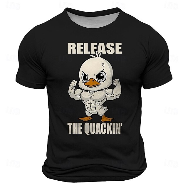 Highlights [Fabric & Fit]: Crafted from high-quality polyester fabric, this T-shirt offers a stretchy and comfortable fit that's perfect for casual wear. The breathable material makes it an excellent choice for the warmer seasons of spring and summer, while ensuring that the fabric remains soft and cozy against the skin. [Design Highlights]: Featuring a humorous and eye-catching 3D print of a muscular cartoon duck with the tagline RELEASE THE QUACKIN', this T-shirt brings a playful and exceptional element to your wardrobe. The classic crew neck style combined with short sleeves provides a timeless appeal and a relaxed look ideal for daily activities. [Occasions]: Perfect for street wear, holidays, and parties, this T-shirt effortlessly blends style and fun, making it a versatile addition to any casual occasion. Its bold design is sure to be a conversation starter, whether you're at a summer barbecue or a weekend gathering. [Size Range]: Available in a range of sizes from S to XXXL, this T-shirt caters to a wide range of body types, ensuring a tailored fit for everyone. The multiple size options allow for a personalized fit, accommodating individual preferences and providing comfort for various age groups. [Care Instructions]: Machine washable, this T-shirt is easy to maintain and perfect for a busy lifestyle, allowing for hassle-free cleaning without compromising on quality or comfort. Perfect for everyday use. first-class materials and excellent craftsmanship ensure long-lasting durability.