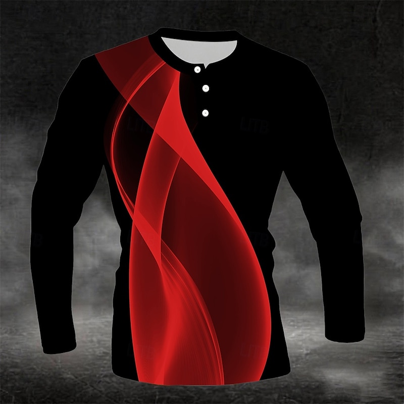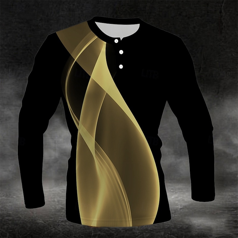 More information about Men's Geometric Pattern Abstract Henley Shirt Long Sleeve Fashion Cute Daily Casual Holiday Going out Spring & Fall every Seasons White Blue Yellow Green Red Henley Henley T-Shirt