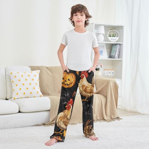 ZZXXB Halloween Rooster Boys Long Pants silky Trousers Elastic Waist Kids Lounge Bottoms with Pockets S-XL