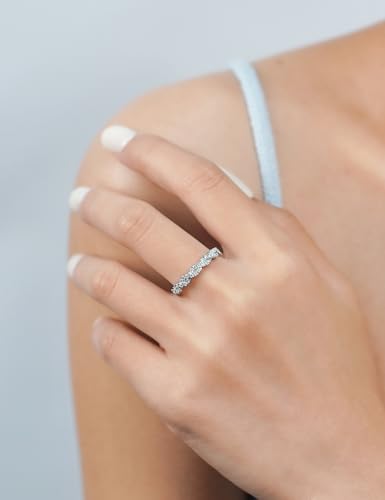 IMOLOVE Moissanite Wedding Bands for Women, Trendy 0.3 Carat Half Silver Women's Eternity Wedding Bands Fashion Moissanite Stackable Rings for Women with 18K White Gold Plated Size 4-11 5