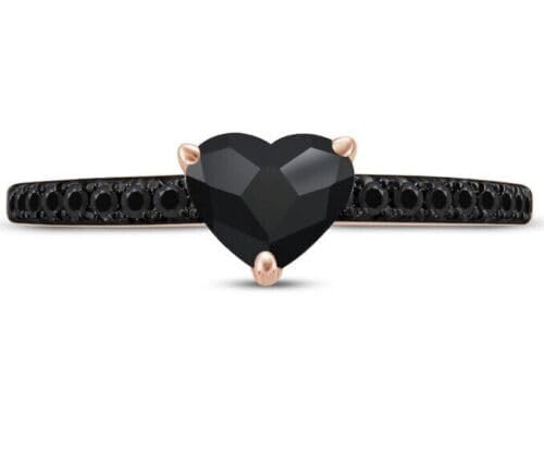 sizzling ! SANTOSH-ENTERPRISES 2.00Ct Heart Cut Lab Created Black Diamond Soliatire Woman's Engagement Ring 14K Rose Gold Finish