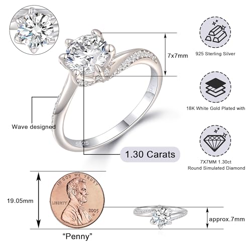 sizzling ! Elspeth 925 Sterling Silver Promise Ring Engagement Rings, Round Cut Simulated 1.2 CT Diamond Bridal Wedding Ring, Gift for Women/Mom/Wife/Girlfriend 8 Size