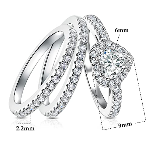 MDFUN Three-in-One Heart Halo Wedding Band Set Engagement Ring 18K White Gold Yellow Gold Plated Cubic Zirconia Promise Eternity Ring for Women Size 5-10 6