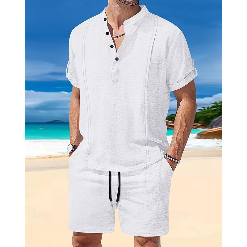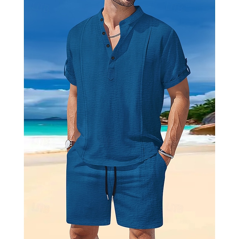This Men's T-shirt Suits 2 Pieces Outfits Tee & Shorts Short Sleeve Henley Summer Plain Fashion Casual 2 Piece Vacation Daily Wear Going out White Royal Blue Brown Top Tee for Men combines elegant design with practical functionality. Every detail has been carefully considered to ensure you get the ultimate possible experience. The first-class construction means this product will serve you well for years to come.
