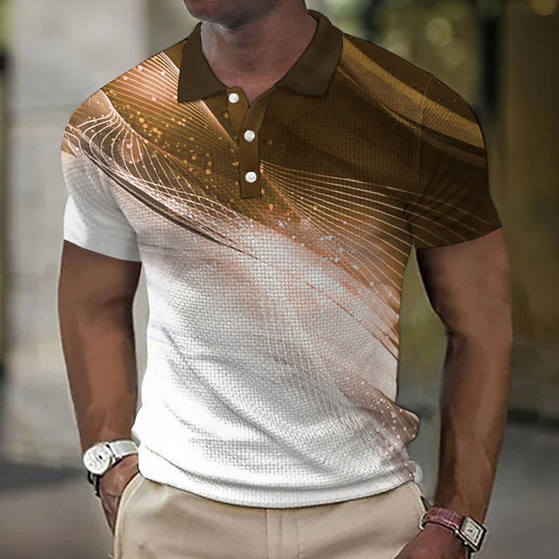 We're thrilled to present an exclusive edition of Men's Waffle Polo Shirt artfully crafted with breathable waffle fabric This chic polo shirt features a button-up design regular fit and vibrant gradient graphic prints superb for a casual or street style look