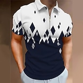 More information about Men's Geometric Zip Polo Shirts Golf Shirt Short Sleeve Polo Shirts Collared Shirts Casual Vacation Wear Formal Wear Festival Wear 3D Print Quarter Zip Polo Spring & Summer Black Dark Navy Green