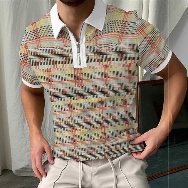 More information about Men's Graphic Zip Polo Short Sleeve Turndown Casual Daily Athleisure Casual Daily Zipper Summer Black Green Brown