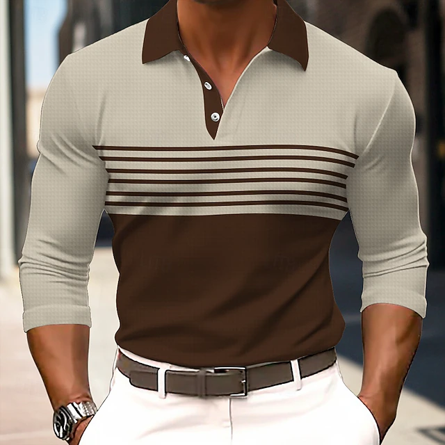 This Men's Striped Rugby Polo Shirts Long Sleeve Polo Shirts Collared Shirts Business Casual School Athleisure Daily Wear 3D Print Spring Fall Winter Light Brown Light Grey Dark Gray combines elegant design with practical functionality. Every detail has been carefully considered to ensure you get the best possible experience. The magnificent construction means this product will serve you well for years to come.