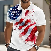 sizzling ! American Independence Day Men's American US Flag Polo Short Sleeve Polo Shirts Lapel Casual Athleisure Festival Outfit Buttons 3D Print Summer Blue