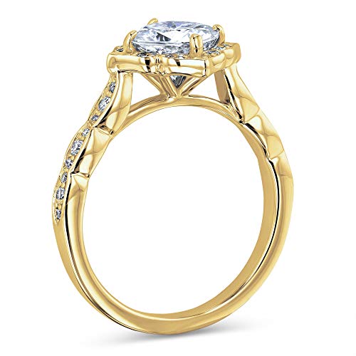 Kobelli 1 1/3 CTW Cushion Moissanite (G-H) Floral Halo Engagement Ring - Multiple Gold Options 2