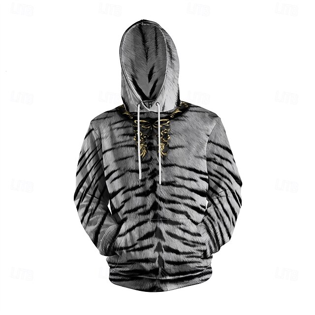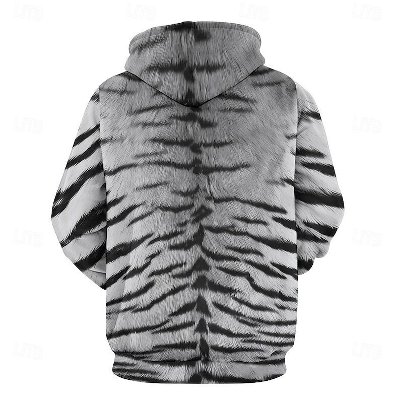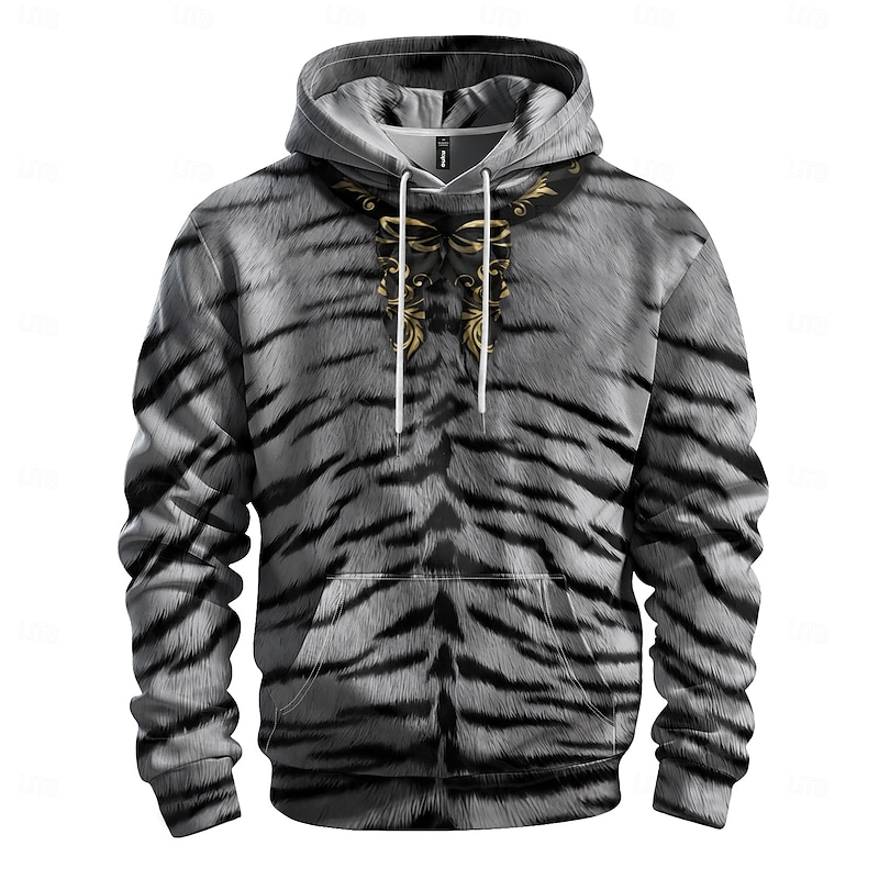 Highlights [Fabric] : Made from high-quality polyester, this men's hoodie offers a soft and comfortable feel with micro-elasticity, ensuring a warm and durable wear for the colder months of winter, spring, and fall. [Fit] : The hoodie features a timeless, form-fit design with a regular length, making it ideal for casual, vacation, and daily settings. It includes a front kangaroo pocket for added convenience and style. [Design Highlights] : Showcasing a bold and adventurous gray and black tiger stripe graphic, the hoodie stands out with its rare 3D print. The hooded neckline is equipped with adjustable drawstrings for a customizable fit, and fleece lining provides extra warmth. [Occasions] : Perfect for sports, outdoor activities, vacations, or just going out, this hoodie adds a touch of the wild to any streetwear style, making it a versatile choice for a range of casual and relaxed occasions. [Size Range] : Available in sizes S to 5XL, this hoodie caters to a wide range of body types, ensuring both comfort and style for adults looking to make a sartorial statement.
