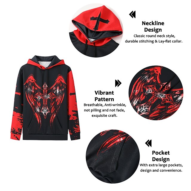 This Men's Wings Templar Cross Knights Templar Letter Graphic Prints Hoodie Hoodies Sweatshirt Streetwear Designer Long Sleeve Hooded Daily Sports Wine Red Black Fall Spring & Fall Designer combines elegant design with practical functionality. Every detail has been carefully considered to ensure you get the best possible experience. The magnificent construction means this product will serve you well for years to come.