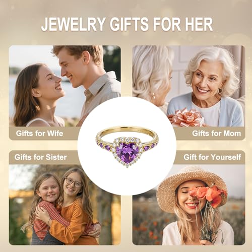 2ct Heart-Cut Natural Amethyst Engagement Ring Solitaire Purple Ring Solid 10k 14k 18k Gold Wedding Band Womens Engraved Promise Birthday for Women Wife 1