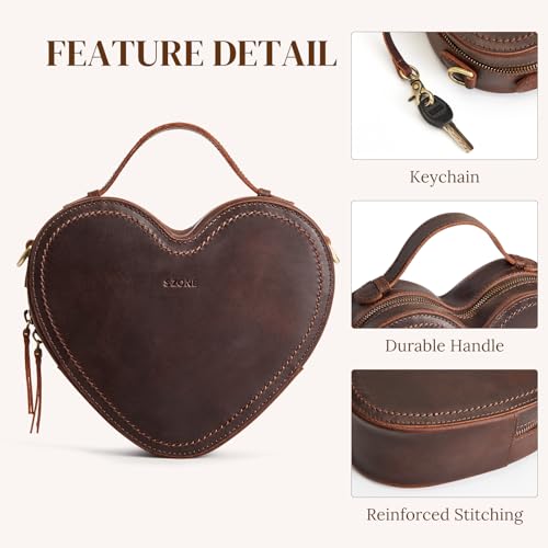 Origin: ImportedClosure type: ZipperItem Display Dimensions: 9.5 x 3 x 7.9 inchesCrazy Horse Leather: Crafted from Crazy Horse leather, this bag combines rugged durability with a luxuriously soft handfeel, developing a one-of-a-kind patina just for you. Compact but mighty (9.5”L x 7.9”H x 3”W), fits essentials without bulkHeart Shaped Design: The heart design bag balances playful appeal and minimalist versatility, pairing it with jeans for weekend markets or a tailored coat for office daysSmart Organization: Engineered for practicality, the interior features 4 dedicated card slots and 1 inner slip pocket for phones, keys, and cosmetics.Externally, a back zipper pocket offers quick-grab storage for tickets, or emergency cashMulti-Way Carry: Switch between handheld, shoulder, or crossbody modes instantly with detachable straps. Reinforced hardware and lightweight design (under 1.5 lbs) keeps you agileAdaptive Style: The heart-shaped maintains a playful-yet-polished aesthetic, pairing effortlessly with athleisure, office attire, or evening outfits Perfect for everyday use. superior materials and excellent craftsmanship ensure long-lasting durability.