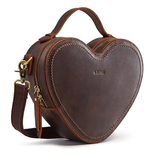 S-ZONE Leather Crossbody Bags for Women Heart Shaped Purse Small Designer Fashion Handbag with Adjustable Strap