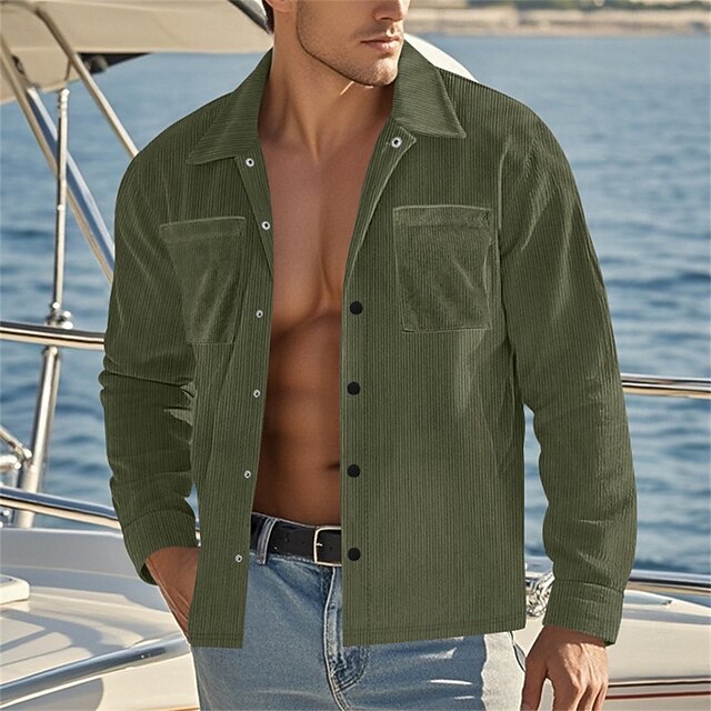 This Men's Shirt Jacket Overshirts Transition Jacket Vacation Lightweight Pocket Summer Plain Holiday Lapel Regular Black Army Green Gray Jacket combines elegant design with practical functionality. Every detail has been carefully considered to ensure you get the ultimate possible experience. The first-class construction means this product will serve you well for years to come.