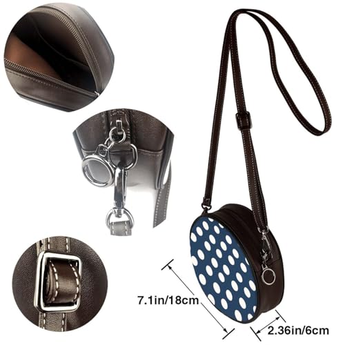 White Polka Dot In Dark Blue Women Round Crossbody Bags Leather Sling Bag Purse