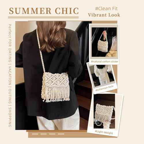 • 【sturdy Material】 Blended with natural cotton straw, this white crossbody purse features delicate handwoven textures and plush fringe tassels. Lightweight (6.35 oz) yet durable for all-day comfort