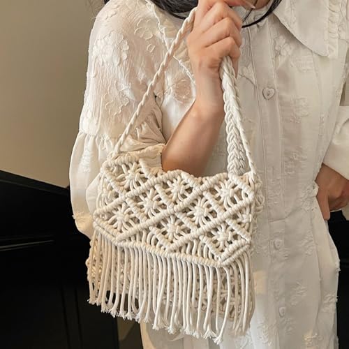 sizzling ! Boho Crossbody Bag for Women, Crochet Bohemian Purse Small Crossbody Bags for Women, Cute Summer Beach Woven Purse with Tassels White Hippie Style