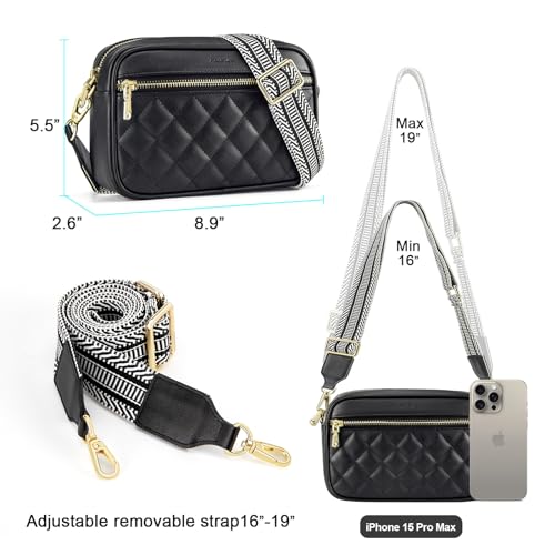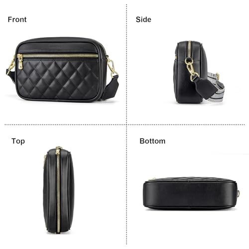 nuoku Quilted Crossbody Bags for Women Wallet Purse with Phone Pocket, Small Travel Purses Anti Theft, Wide Guitar Strap 2