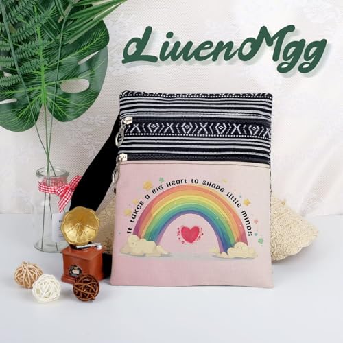 Big Heart Messenger Bag Small Ethnic Pattern Adjustable Strap Crossbody Zipper Bag Rainbow Phone Bag Wallet Cute Shoulder Handbag Appreciation Present for Teachers Women 7