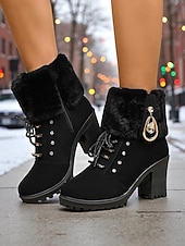 Highlights - Luxurious Faux Leather and Faux Fur upper materials - fashionable Chunky Heel for added comfort and style - traditional Round Toe shape for a timeless look - Durable Rubber outsole for long-lasting wear - Stay ahead of the trend with our 2025 Snow Boots