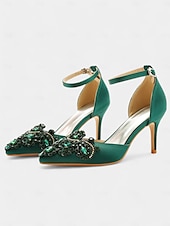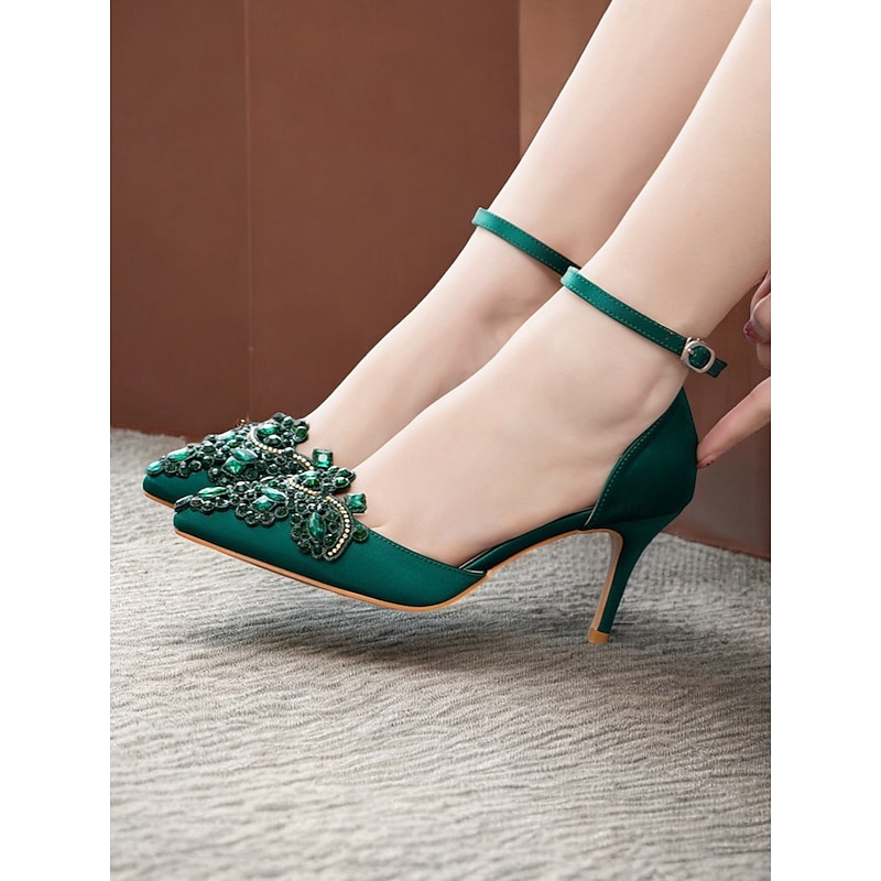 More information about Women's Emerald Green Satin Ankle Strap Heels – Pointed Toe Cocktail Shoes with Crystal Embellishments for Parties and Weddings