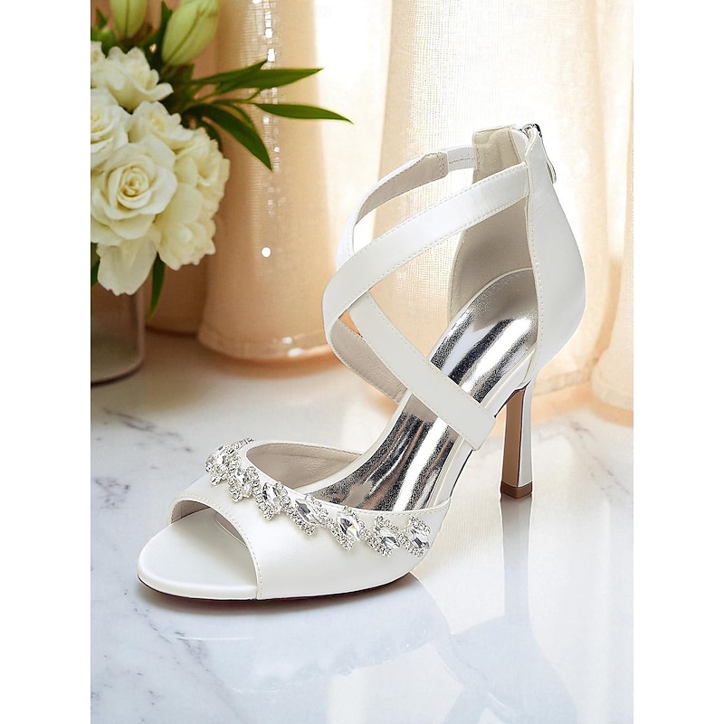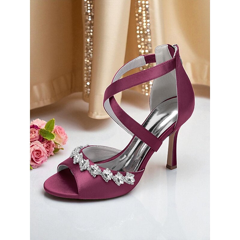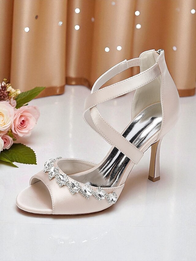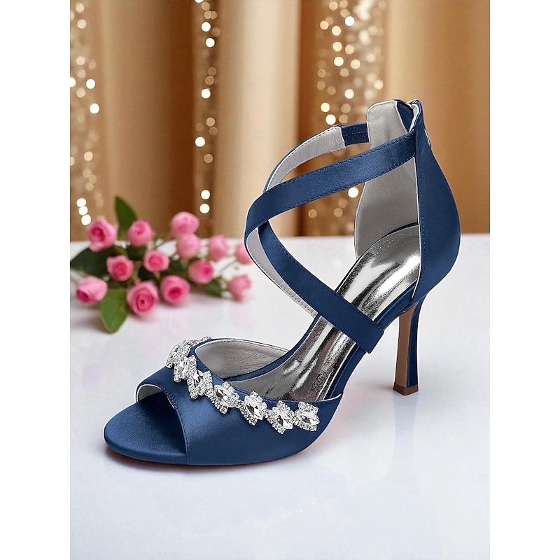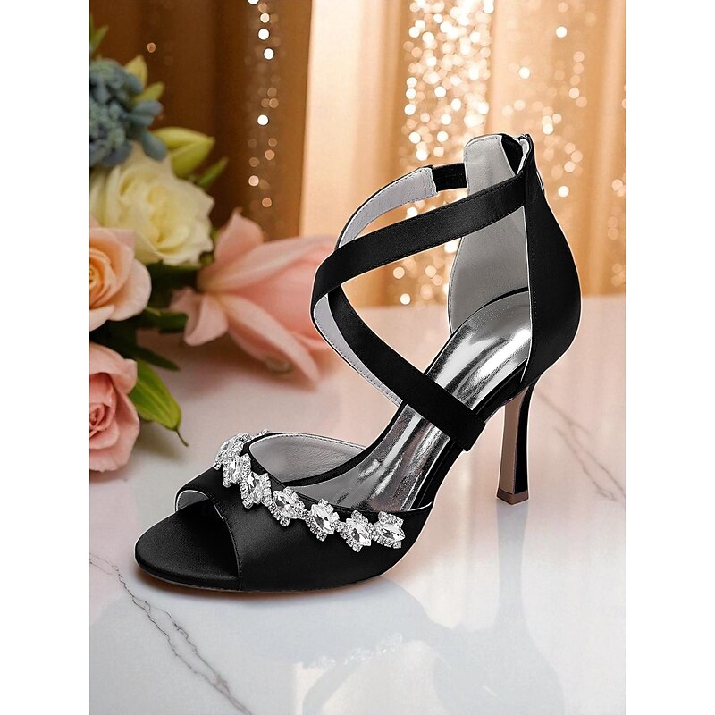 Why Choose Women's Satin Rhinestone Peep Toe High Heel Sandals - Elegant Crisscross Strap Dress Shoes for Ladies, Ideal for Cocktail Parties and Formal Events?