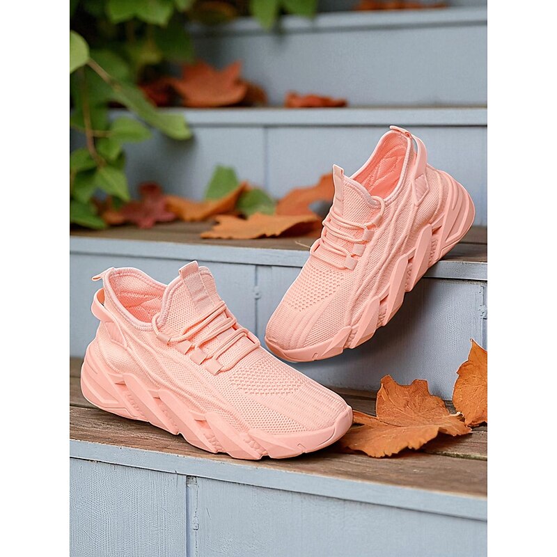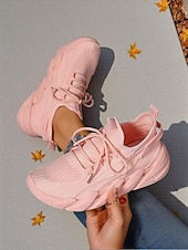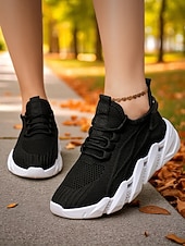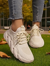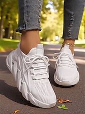 More information about Women's White Chunky Sole Lace-Up Sneakers – Lightweight Breathable Mesh Sports Shoes for Running, Walking & Casual Outfits