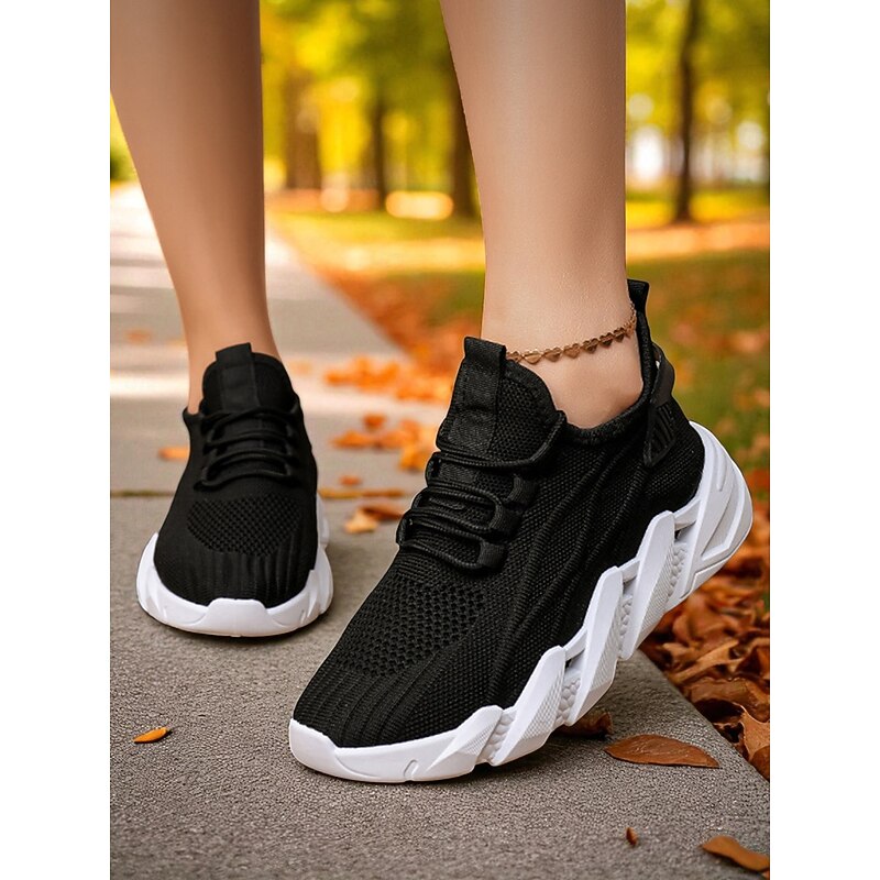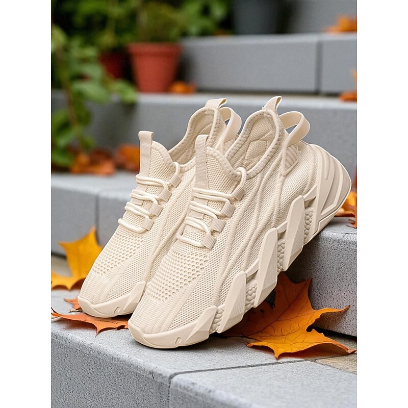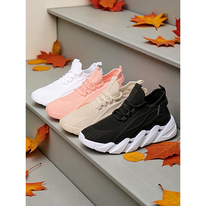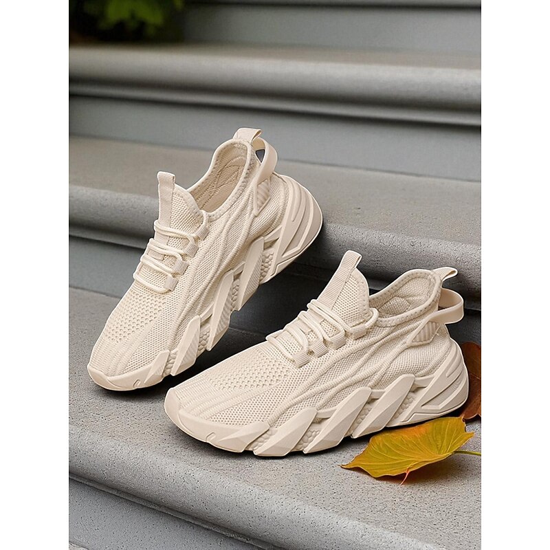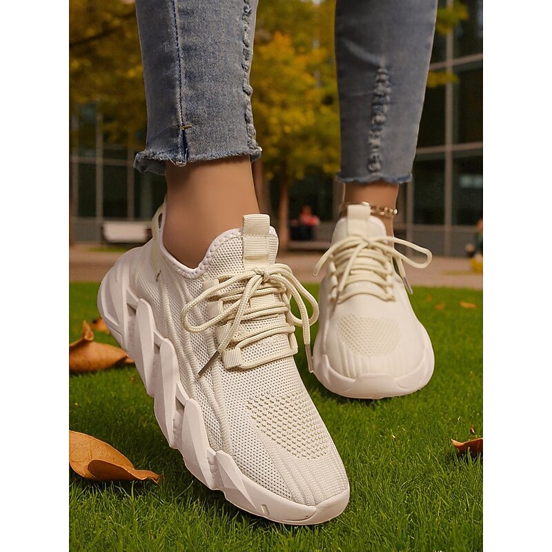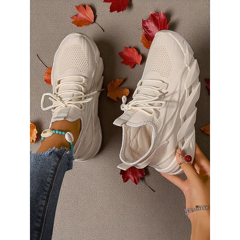 sizzling ! Women's White Chunky Sole Lace-Up Sneakers – Lightweight Breathable Mesh Sports Shoes for Running, Walking & Casual Outfits