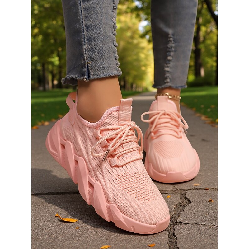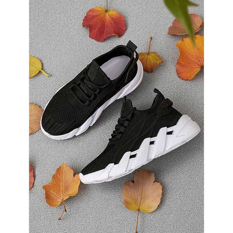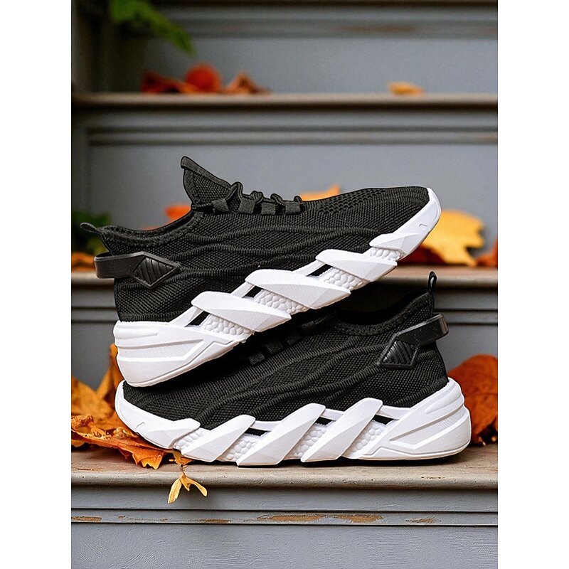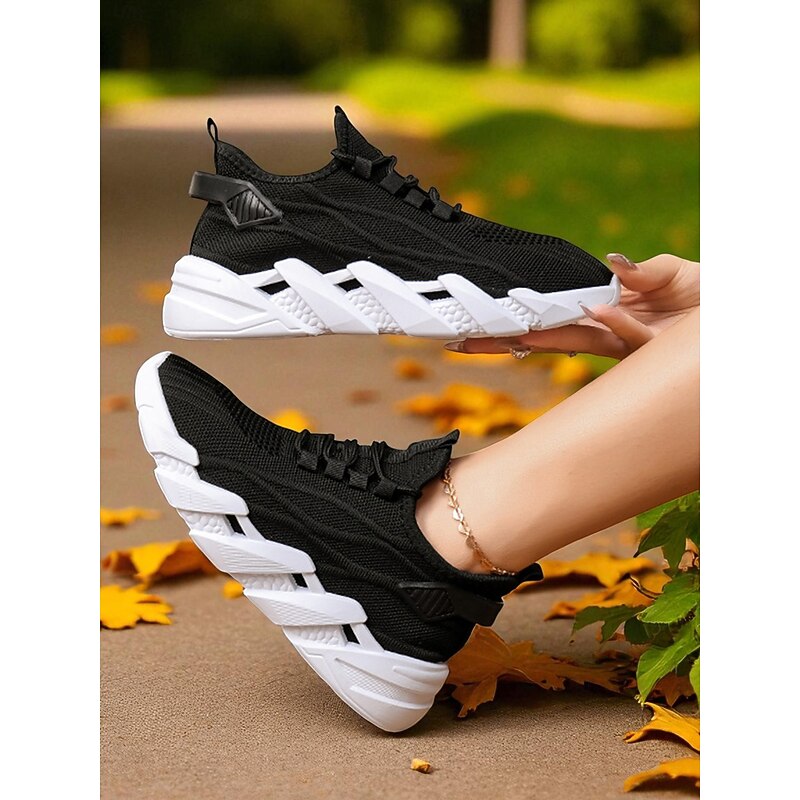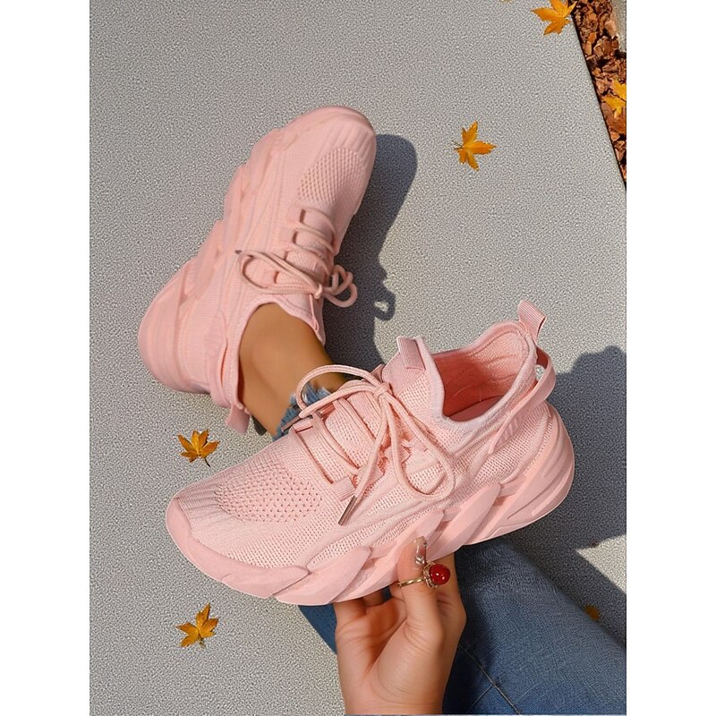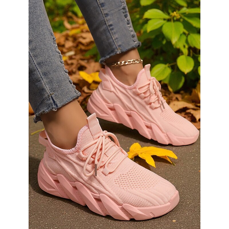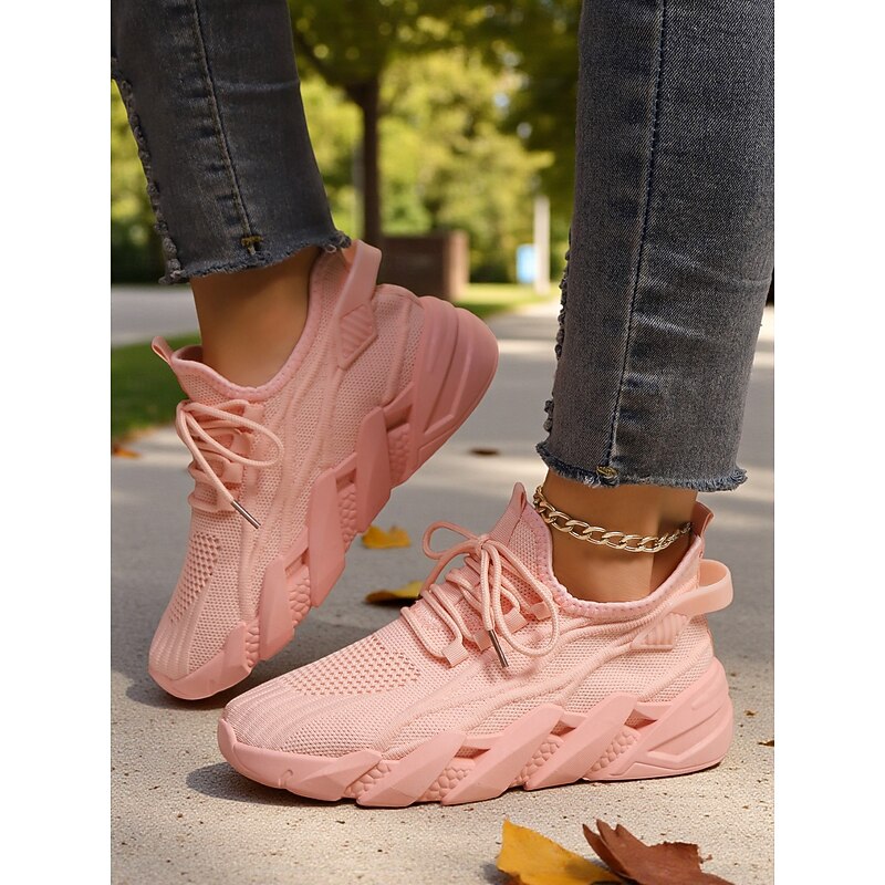 sizzling ! Women's White Chunky Sole Lace-Up Sneakers – Lightweight Breathable Mesh Sports Shoes for Running, Walking & Casual Outfits