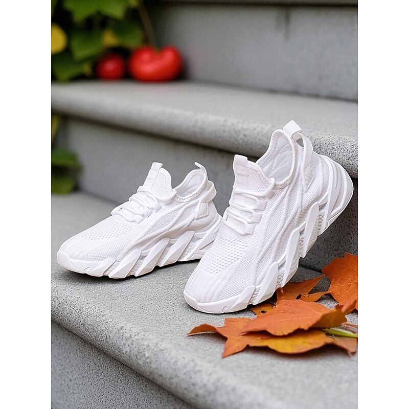 Women's White Chunky Sole Lace-Up Sneakers – Lightweight Breathable Mesh Sports Shoes for Running, Walking & Casual Outfits 24