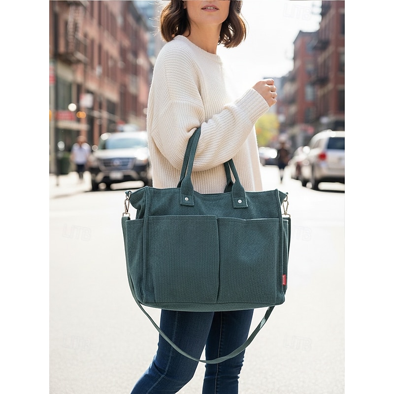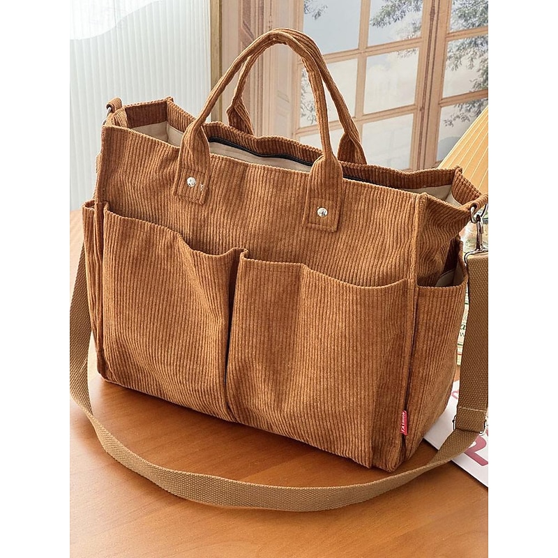 $19.99 - Women's Corduroy Tote Bag with Multiple Pockets, Casual Vintage Shoulder Handbag, Large Capacity Crossbody Purse for Daily Use, Work, Travel & Shopping 2025. Shop for cheap Handbag & Totes online? Buy at lightinthebox.com on sale today!