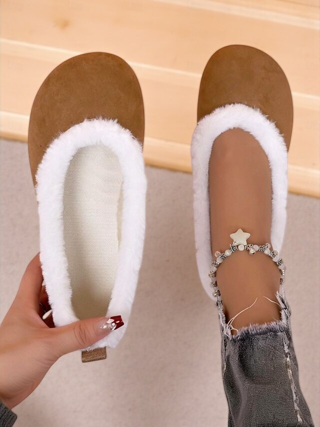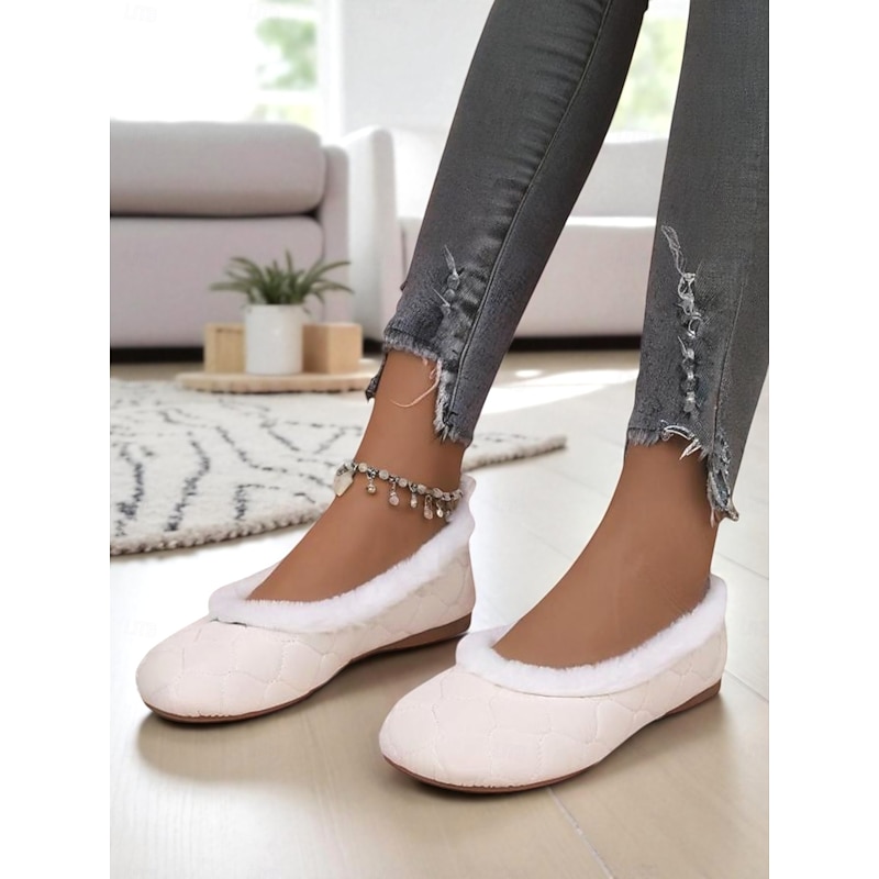 Women's Taupe Quilted Faux Fur Lined Flat Shoes – Warm Cozy Slip-On Winter Shoes for Daily Casual Outfits 11