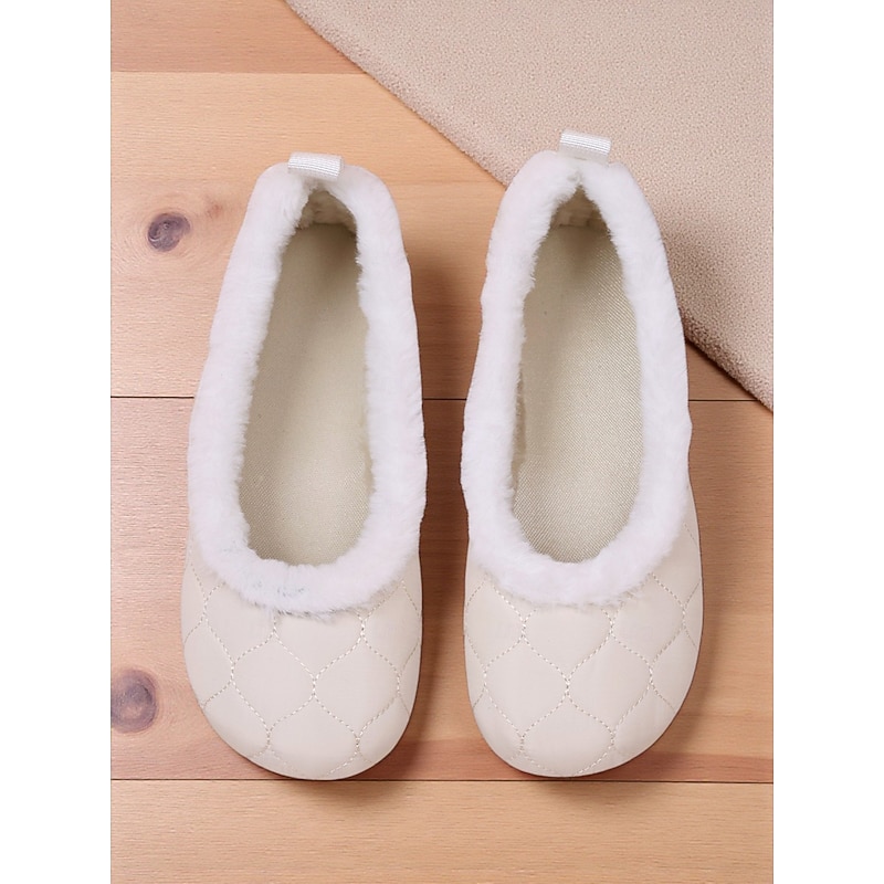 sizzling ! Women's Taupe Quilted Faux Fur Lined Flat Shoes – snug Cozy Slip-On Winter Shoes for Daily Casual Outfits