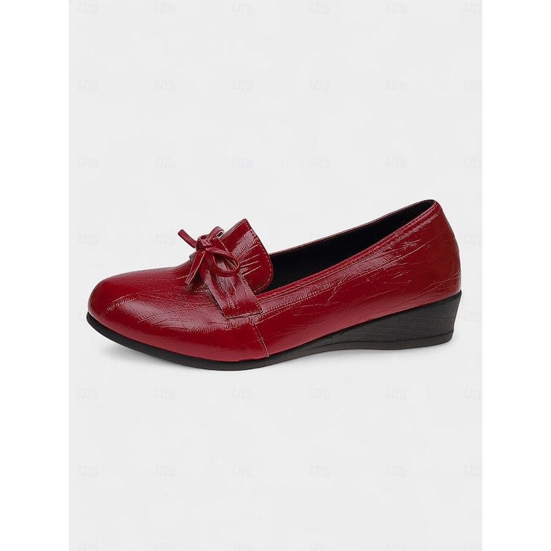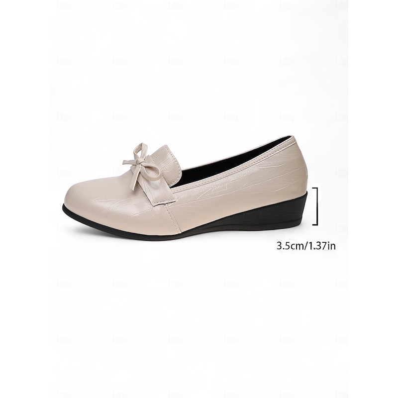sizzling ! Women's Cream Faux Leather Loafers – relaxing Bowknot Slip-On Wedge Flats, Casual Elegant Shoes for Office, Shopping and Daily Wear
