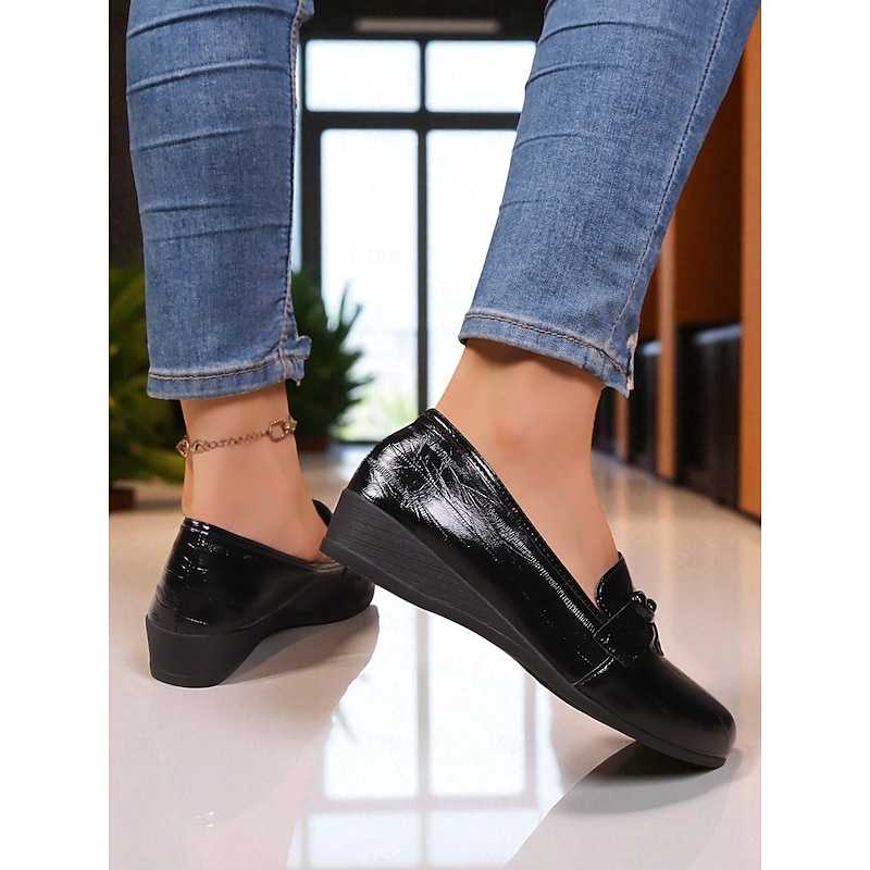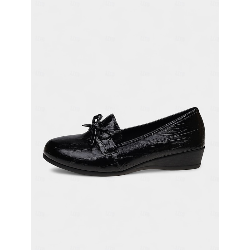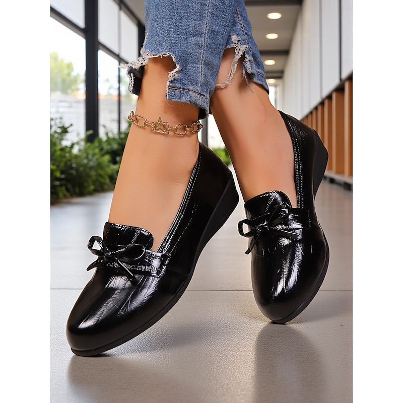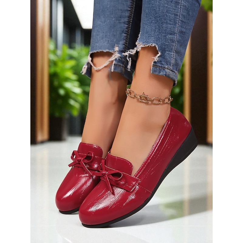 Women's Cream Faux Leather Loafers – Comfortable Bowknot Slip-On Wedge Flats, Casual Elegant Shoes for Office, Shopping and Daily Wear 22